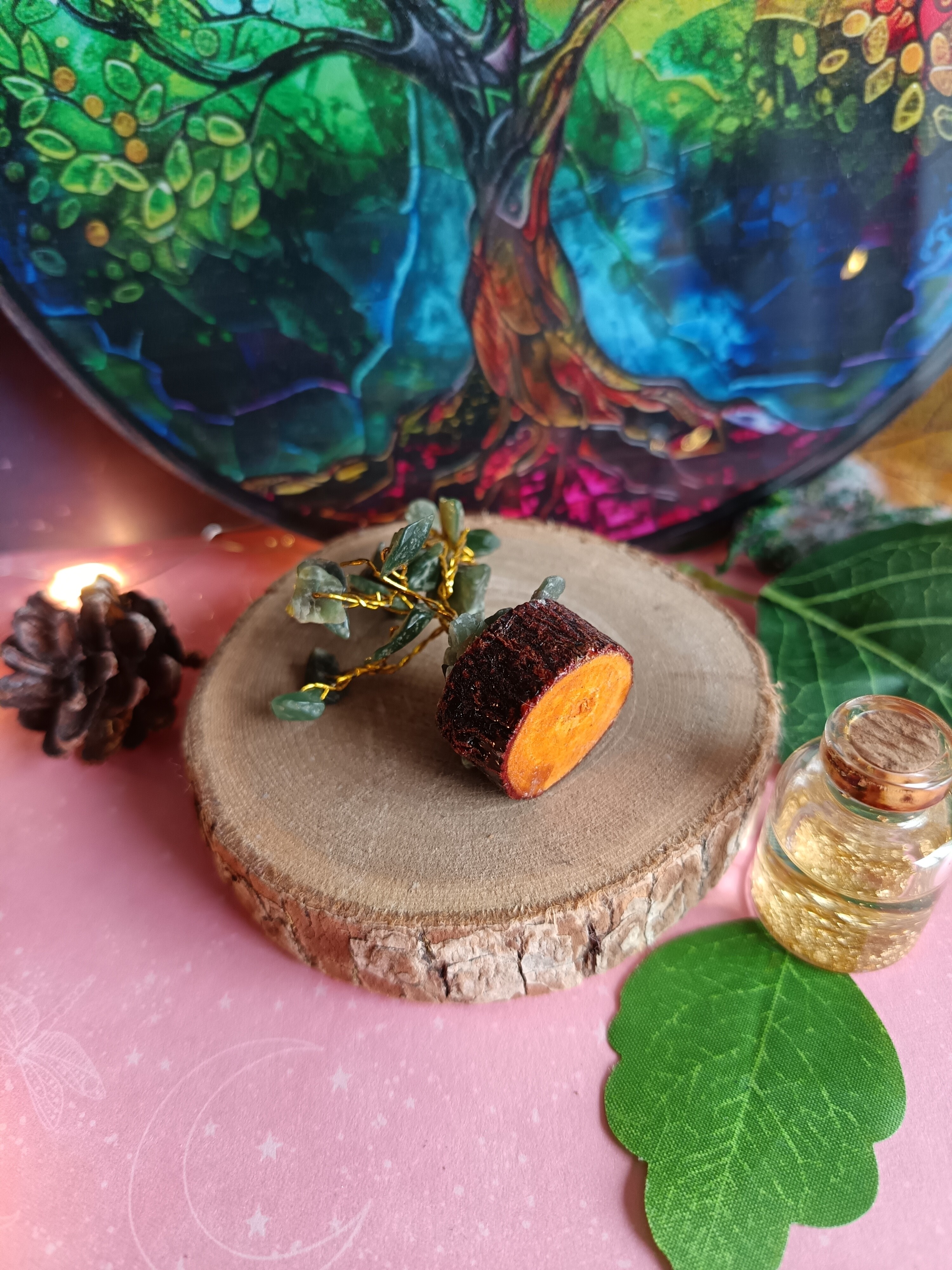Un petit arbre avec des moceaux d' aventurine verte, une pierre apaisante. Un véritable anti-stress au quotidien. Porte chance également ! Une couleur spirituelle et permet d'apaiser les émotions.