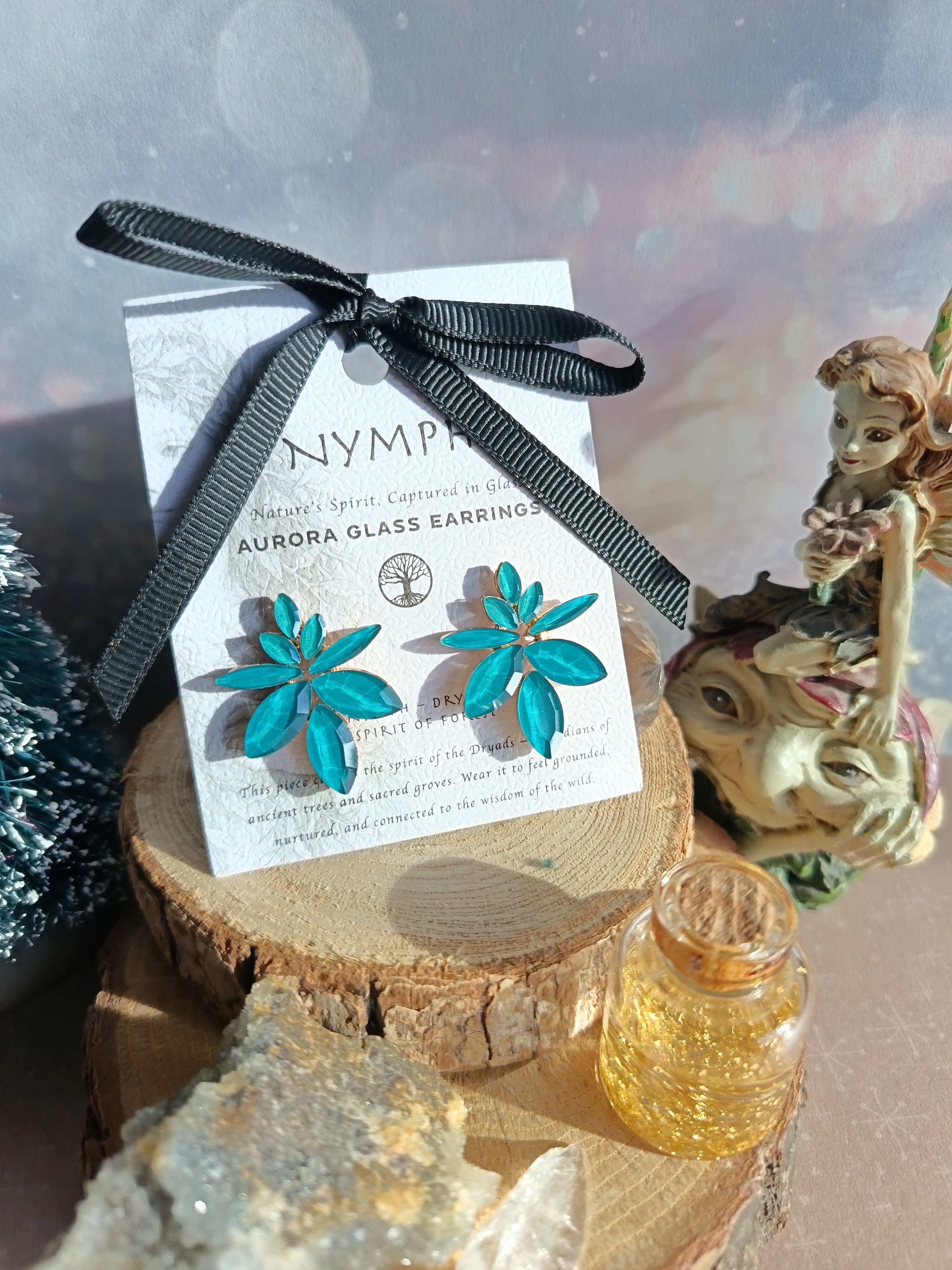 Nymph « L’esprit de la nature capturé dans le verre » Boucles d’oreilles Dryads : Esprit de la forêt