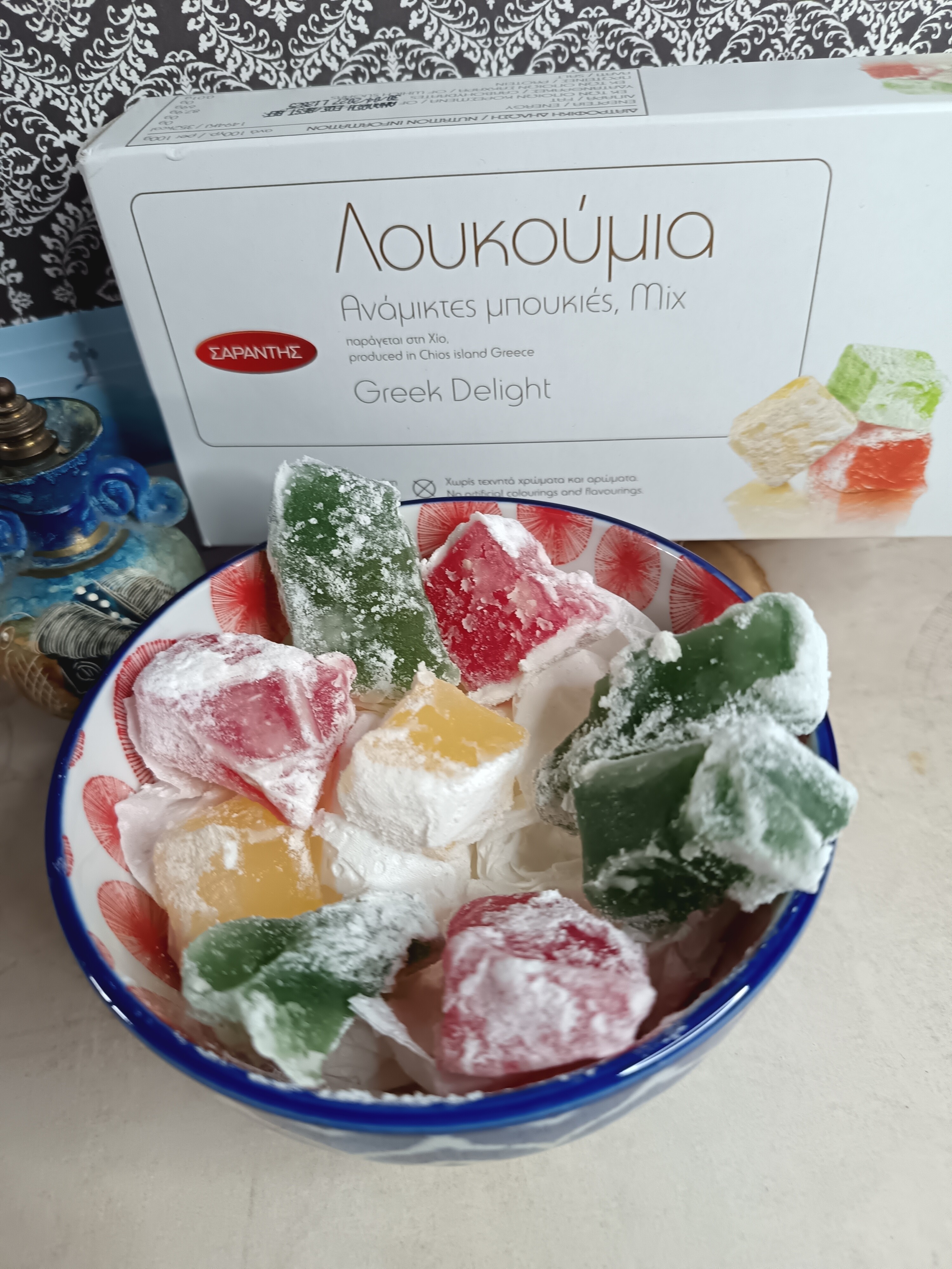 Loukoums à la rose, à la pistache, à la grenade… découvrez dans cette boite un assortiment de loukoums aux milles saveurs. La qualité de ces loukoums délicieusement uniques vous fera voyager l’espace d’une bouché sucrée au cœur des îles grecques. A déguster durant votre pause-café, au goûter, en dessert et à n’importe quel autre moment de la journée, ces sucreries gorgés de soleil deviendront un incontournable dans votre cuisine.