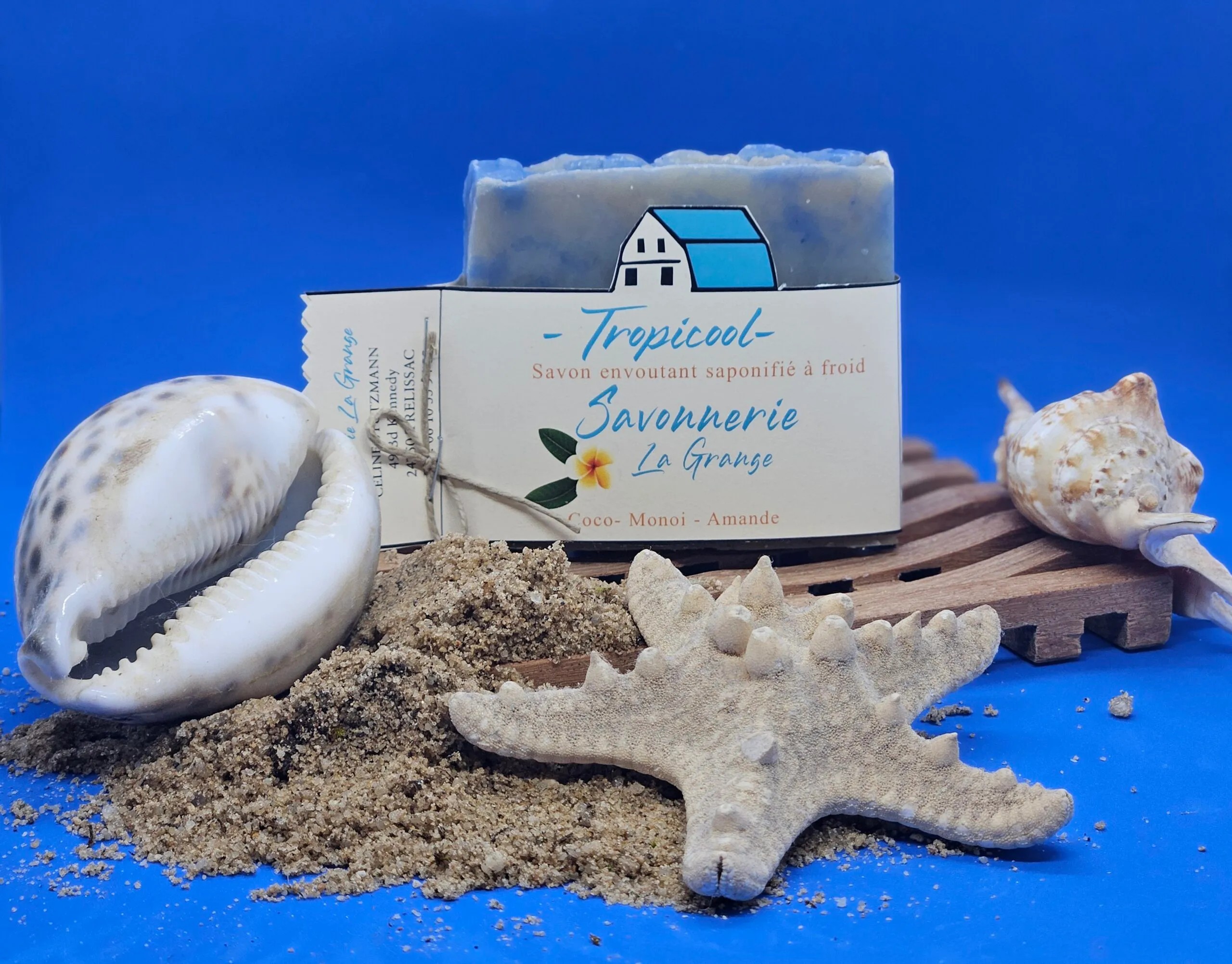 Offrez à votre peau un véritable moment d’évasion avec le savon Tropicool, un soin artisanal aux huiles précieuses de coco, d’olive, de ricin et d’amande douce BIOlogiques.